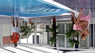 Horny teeny twat orgy by the pool