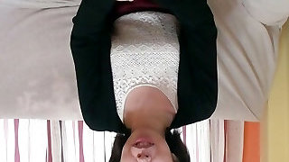 Super-steamy housewife Lukerya records flirting clips, sits on the washing machine, chats merrily and shows naked striptease.