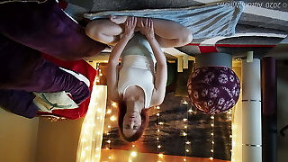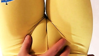 Dry humping camel toe in missionary pose till he cum in clothes, grinding on her spread legs makes him cum in his pa