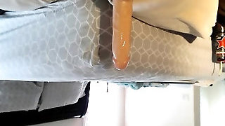 ado amateur avec un énorme gode se masturbant devant sa webcam