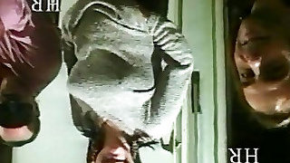 Black hair stunner with nice tits on couch fucking fat cock watched by sexy blonde